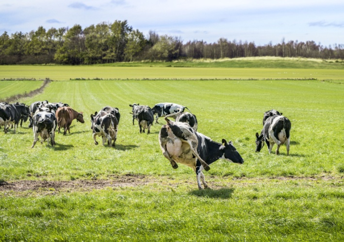 De koeiendans oogt vrolijk, maar zegt niet per se dat koeien dagelijks goed welzijn ervaren. Volgens de Vakbond voor Dieren is het eerder een reactie op maandenlange beperking in de stal dan een echt feest.
